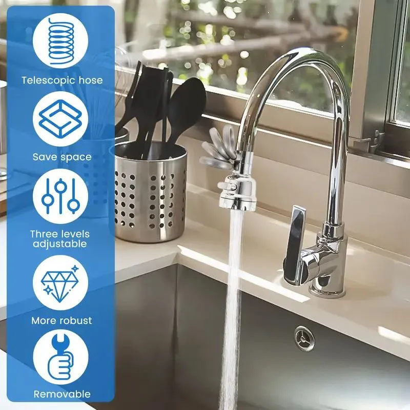 مرش الحنفية القابل للتمدد يأتي ب3 وضعيات للماء، يمكنك غسل الصحون والأواني بفعالية، تنظيف الفواكه والخضروات، سطح المطبخ وكذلك يستعمل في الحمام. 💧 يقلل من استهلاك الماء ويجعل حياتك أسهل في رمضان!