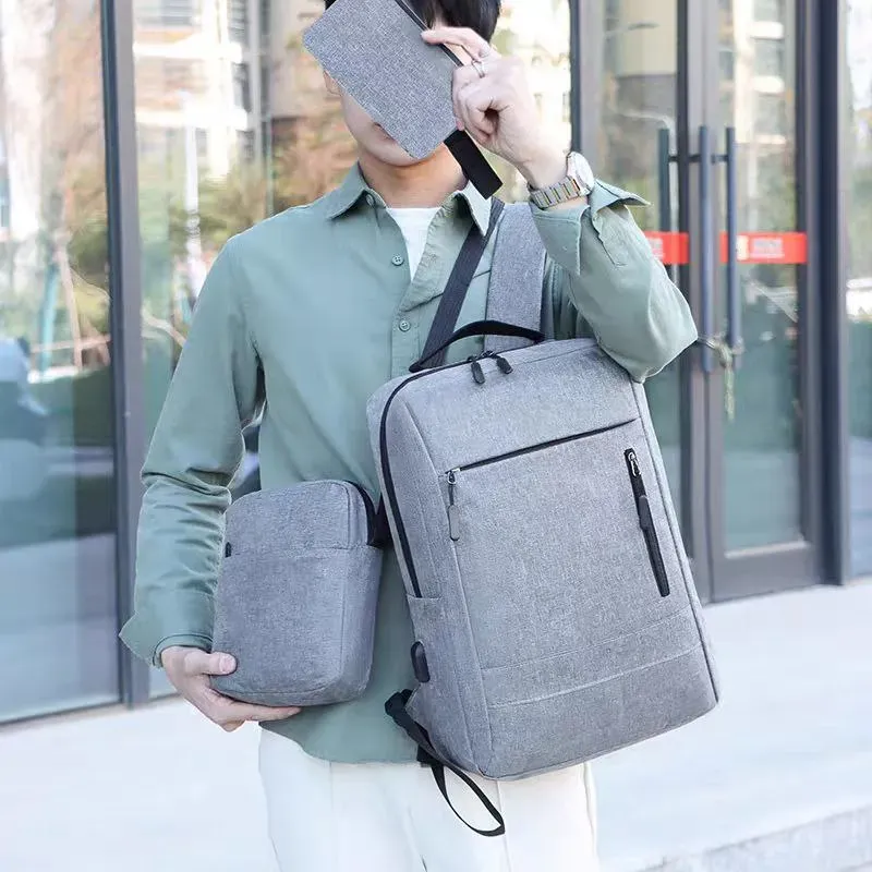 ✔️ 3 قطع متكاملة: حقيبة ظهر واسعة + حقيبة يد عملية + بوشات.